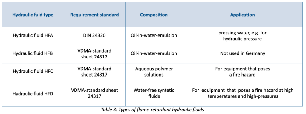 HFB fluids with a nominal viscosity similar to that ofhydraulicfluidsarenotwidelyusedinGermany, becausetheyarenotrecognizedasflame-retardant. HFB fluids are used in Great Britain and Commonwealth countries. They can be used from + 5 °Cto + 60 °C, the mineral oil proportion is < 60 %.