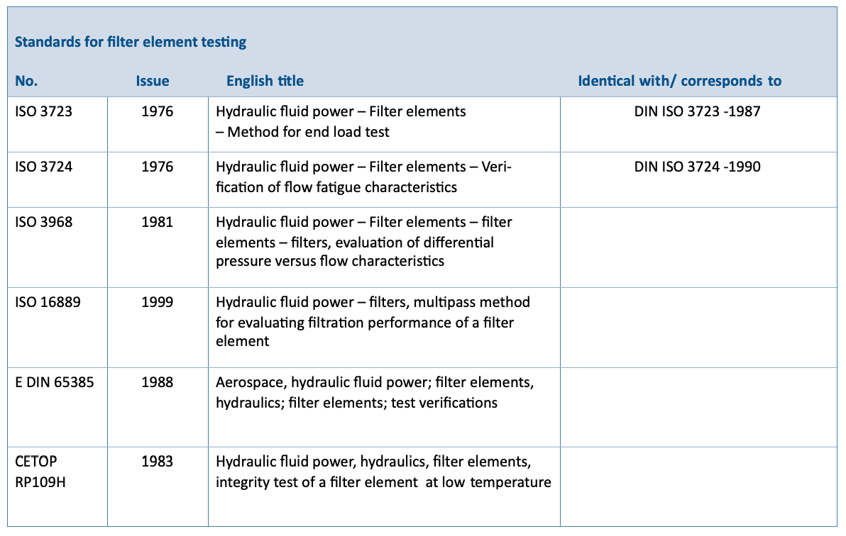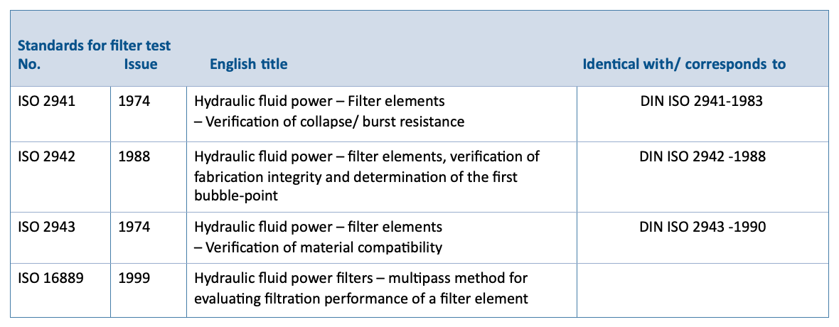 In hydraulics, reference is made tofilter fineness x (in µm), if the filter element corresponds to the requirements of the multipass test in accordance with ISO 16899. For the sake of completeness, it is also necessary to mention the specification of the beta value, e.g. ß10(c)≥ 200. The terms “nominal“ and “absolute“ are not defined and should not be used. For filter finenesses ≥ 40 µm, when specifying filterfineness,themeshwidthortheaveragepore size of a filter material are alsolisted.